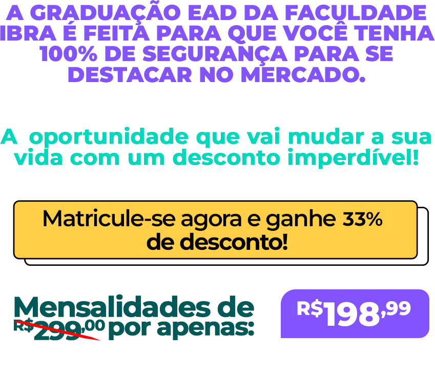 A Faculdade IBRA entende a educação como uma ponte no presente para um futuro melhor. Existimos para levar ensino de excelência a todos, em todos os cantos do Brasil.
